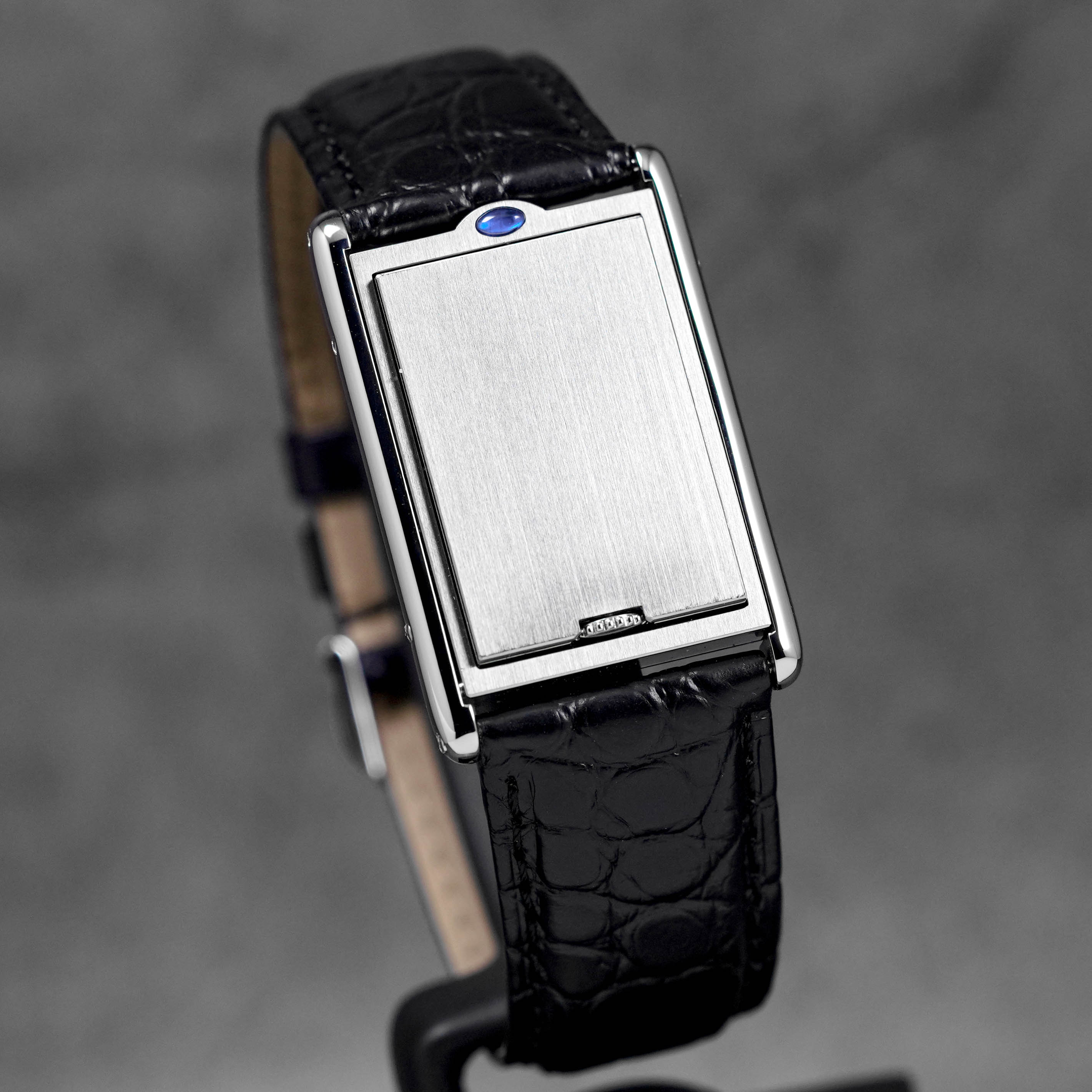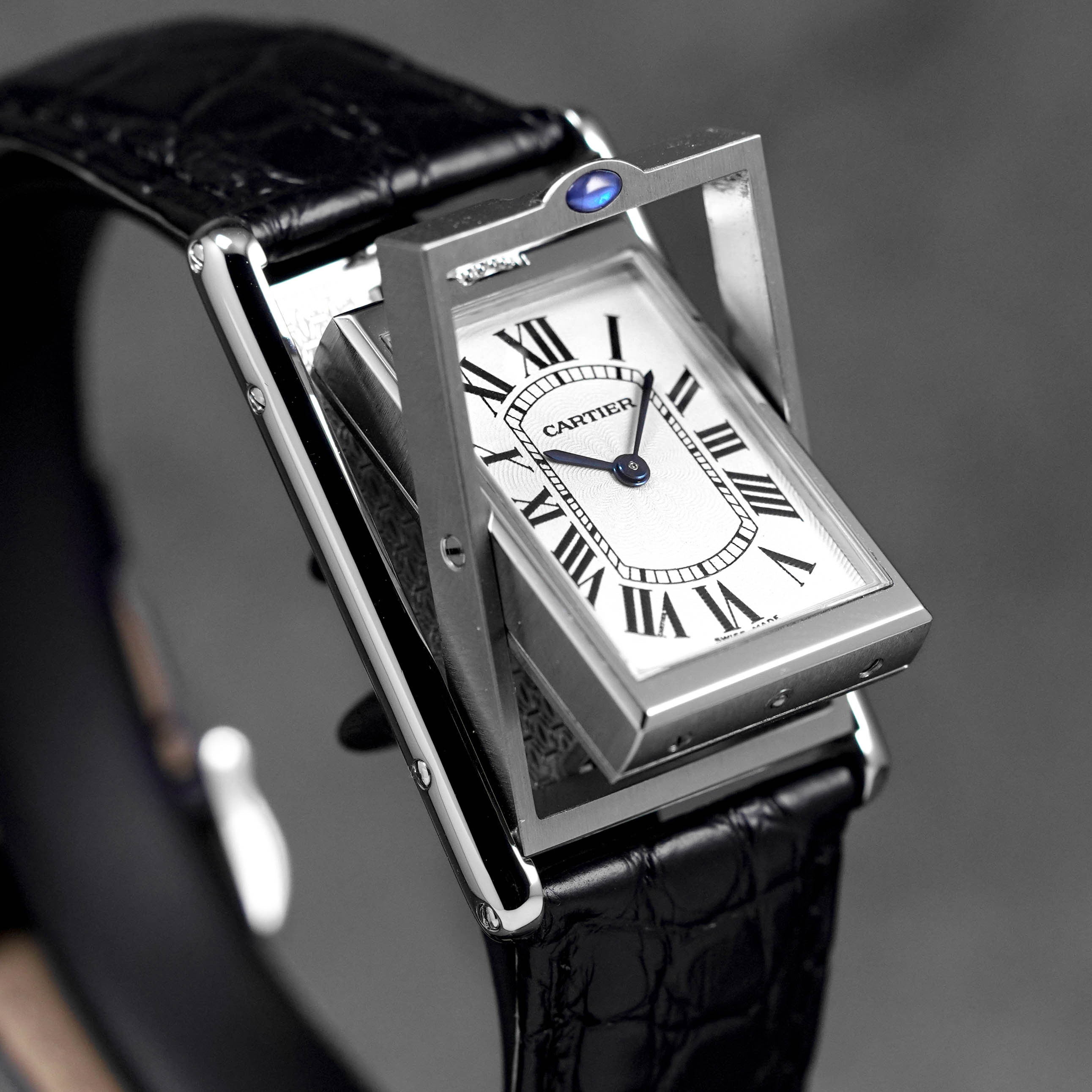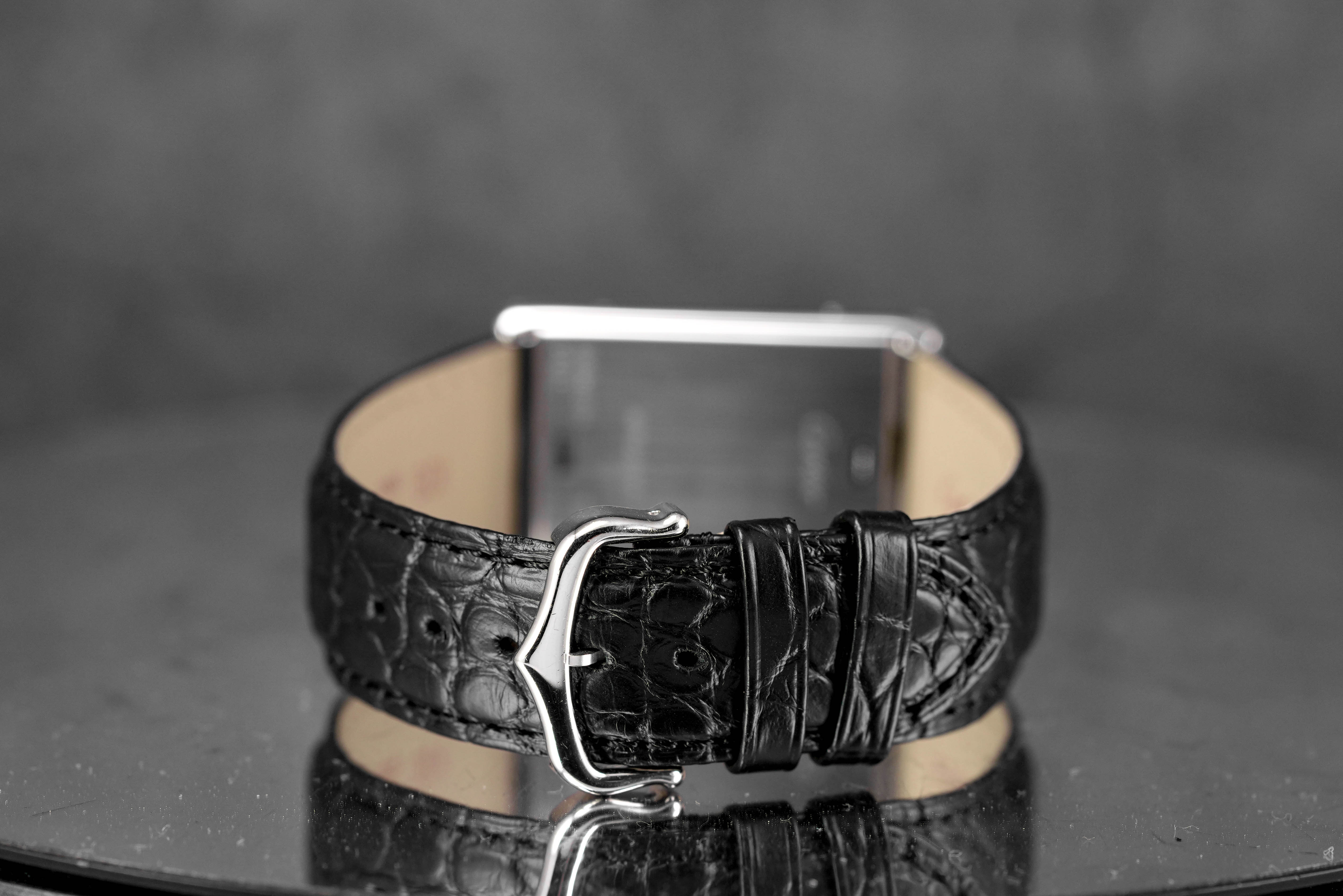 CARTIER TANK BASCULANTE MECANIQUE BLACK LEATHER STRAP