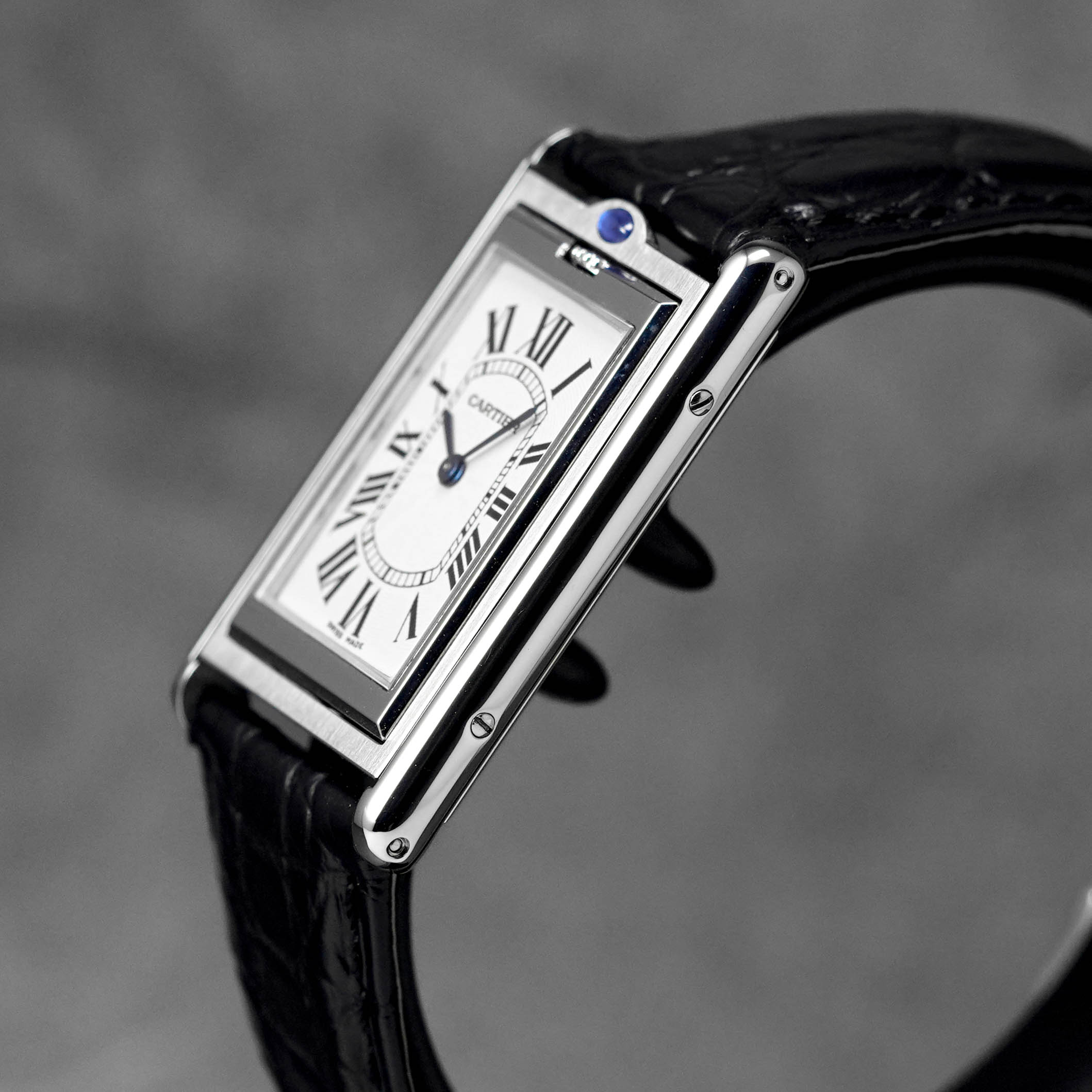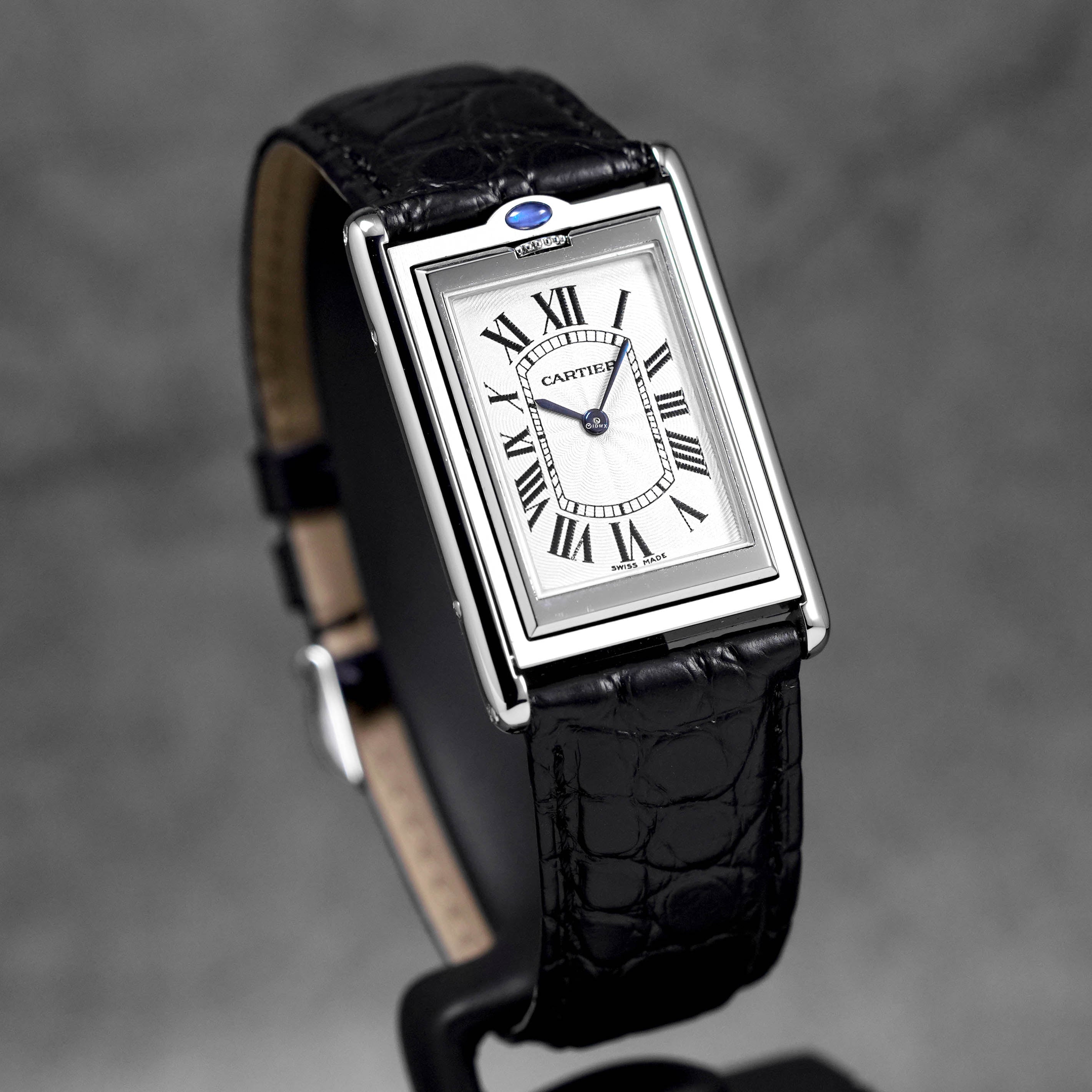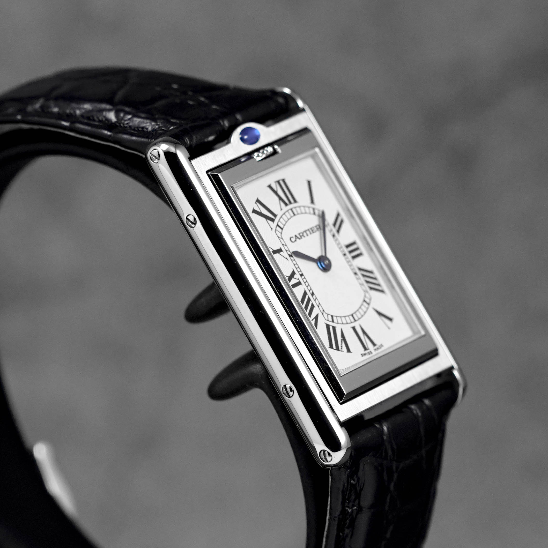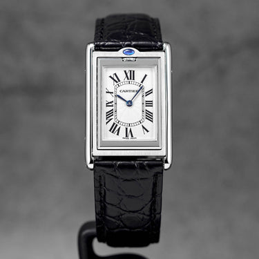 CARTIER TANK BASCULANTE MECANIQUE BLACK LEATHER STRAP