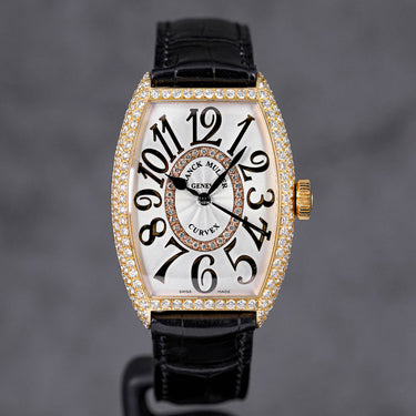 FRANCK MULLER MASTER OF COMPLICATIONS CURVEX RELIEF YELLOWGOLD DIAMOND SILVER DIAL