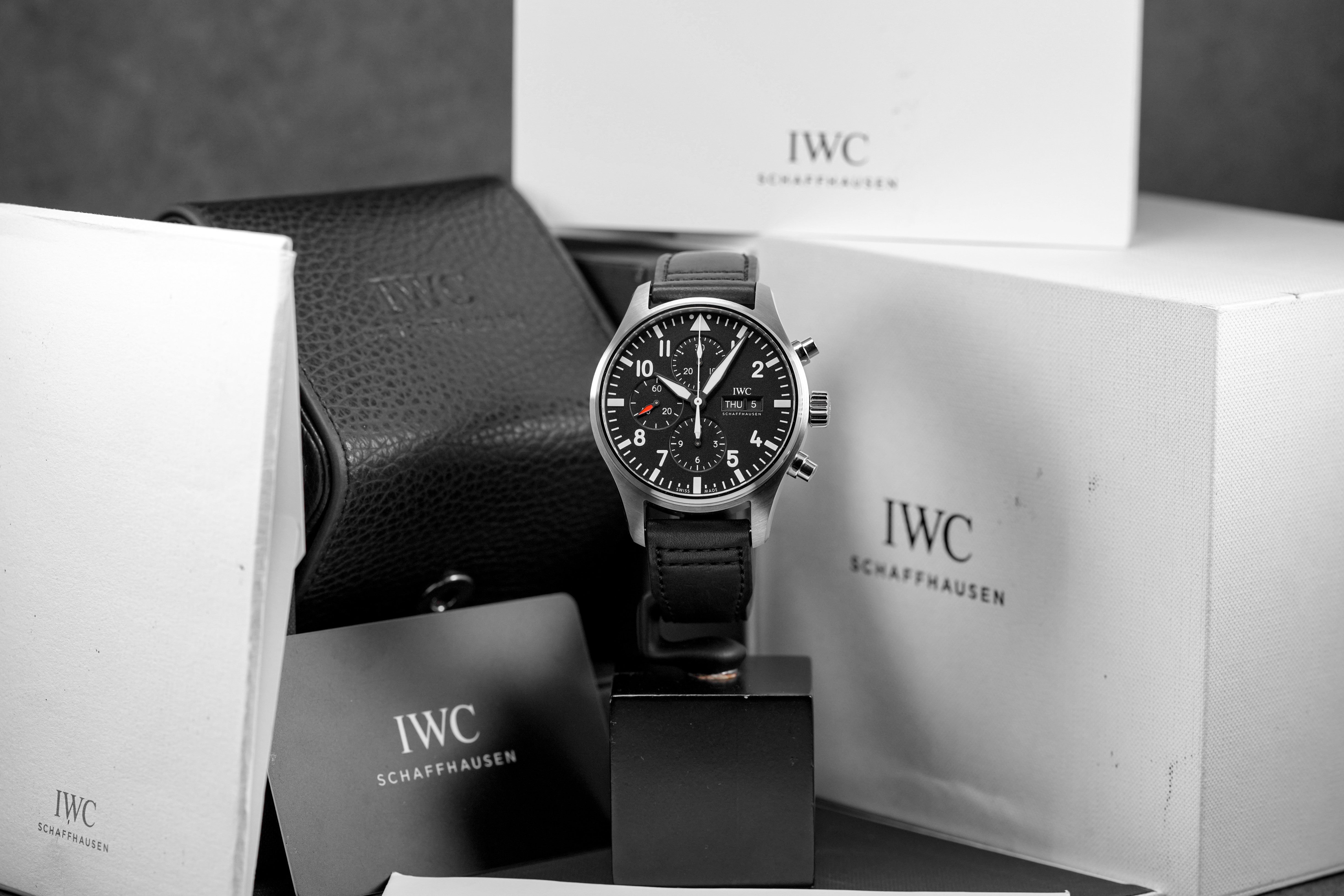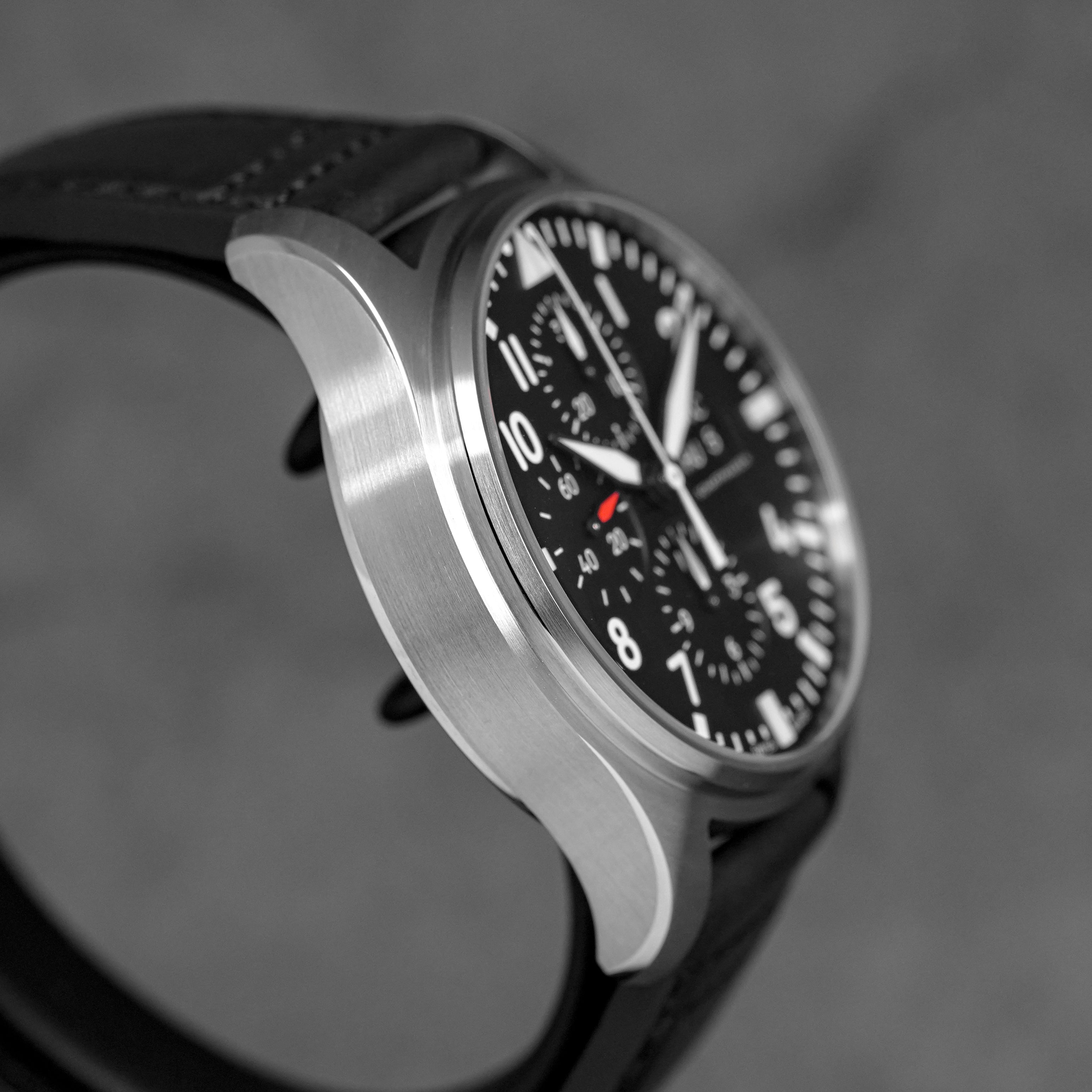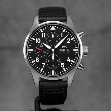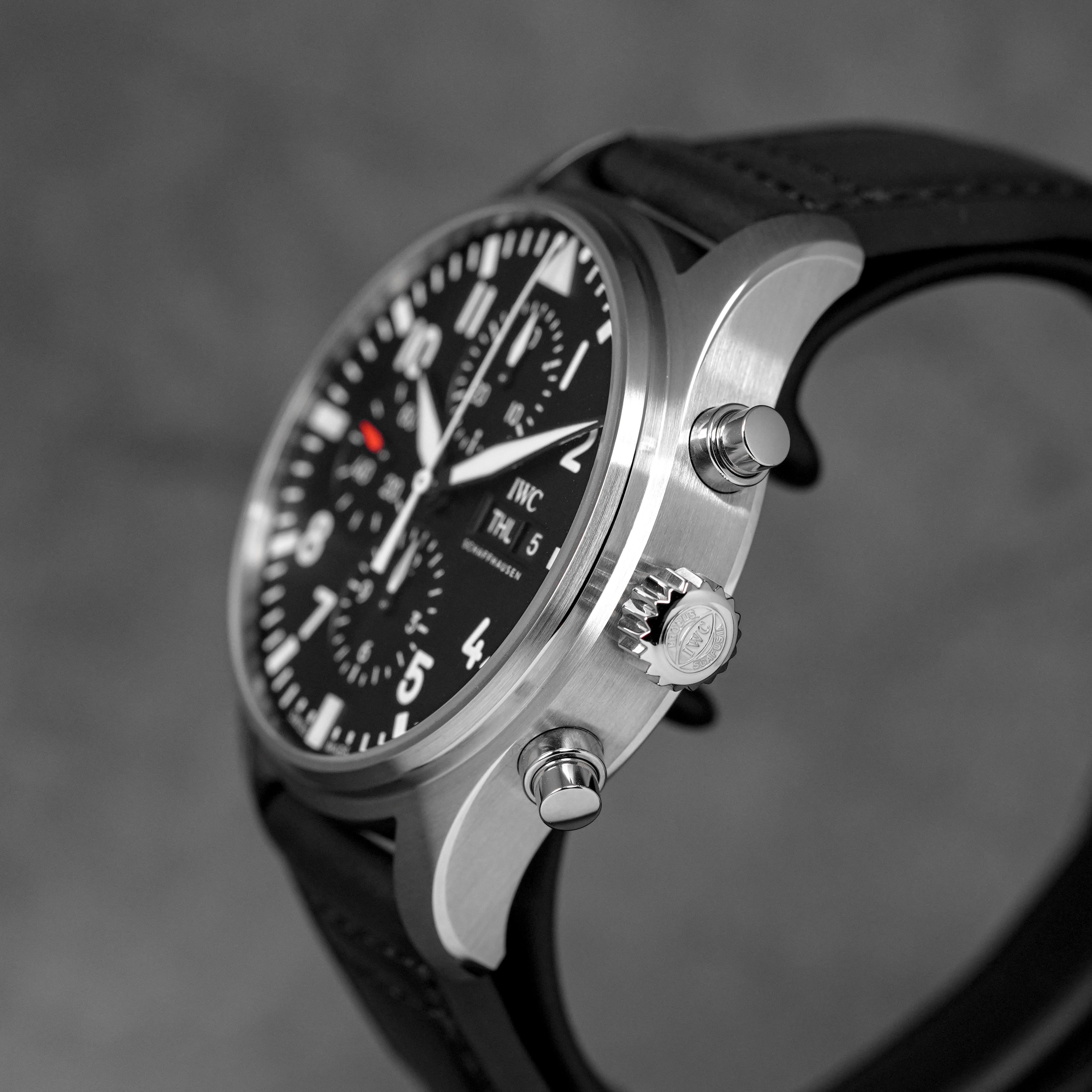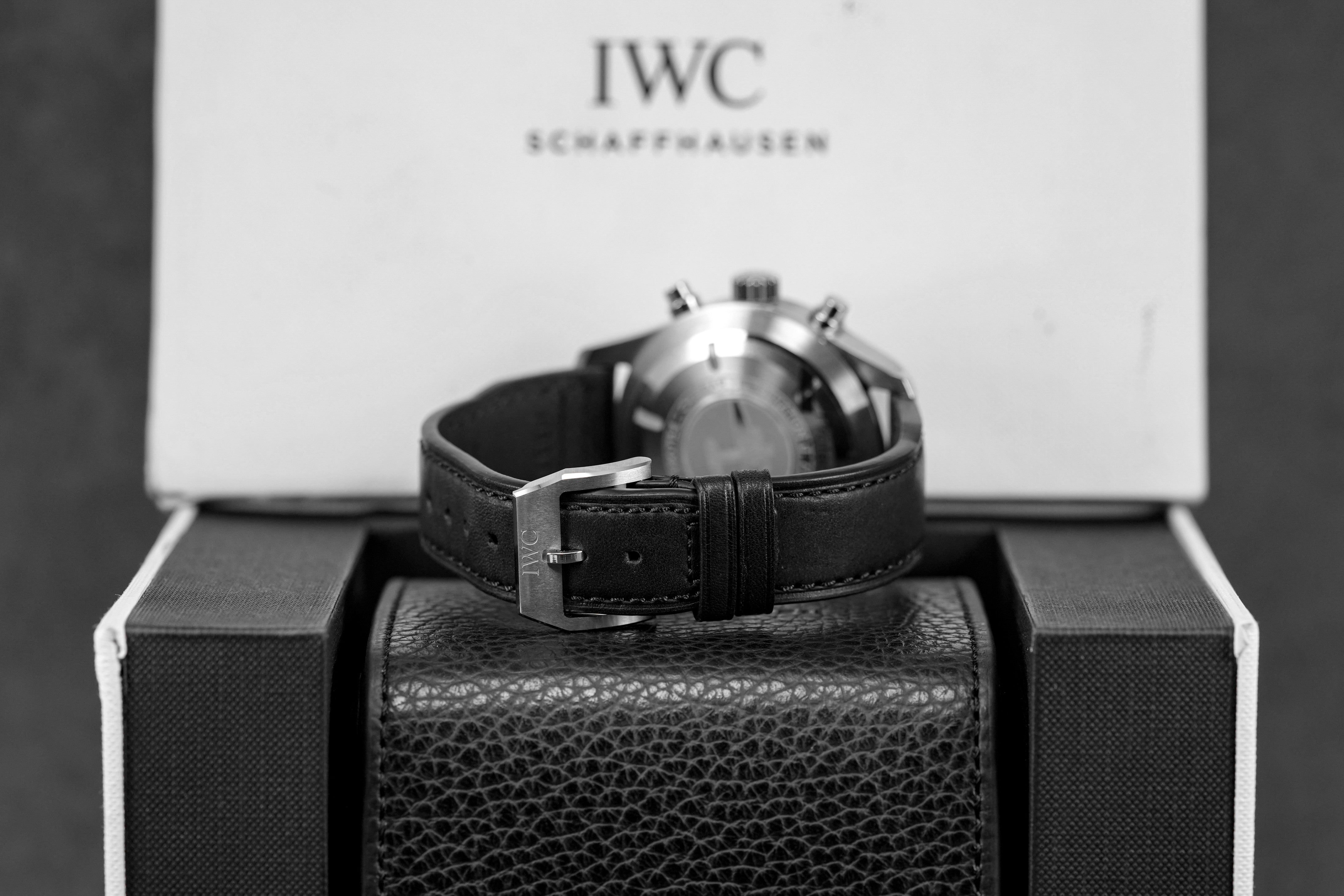 IWC PILOT CHRONOGRAPH BLACK DIAL LEATHER STRAP