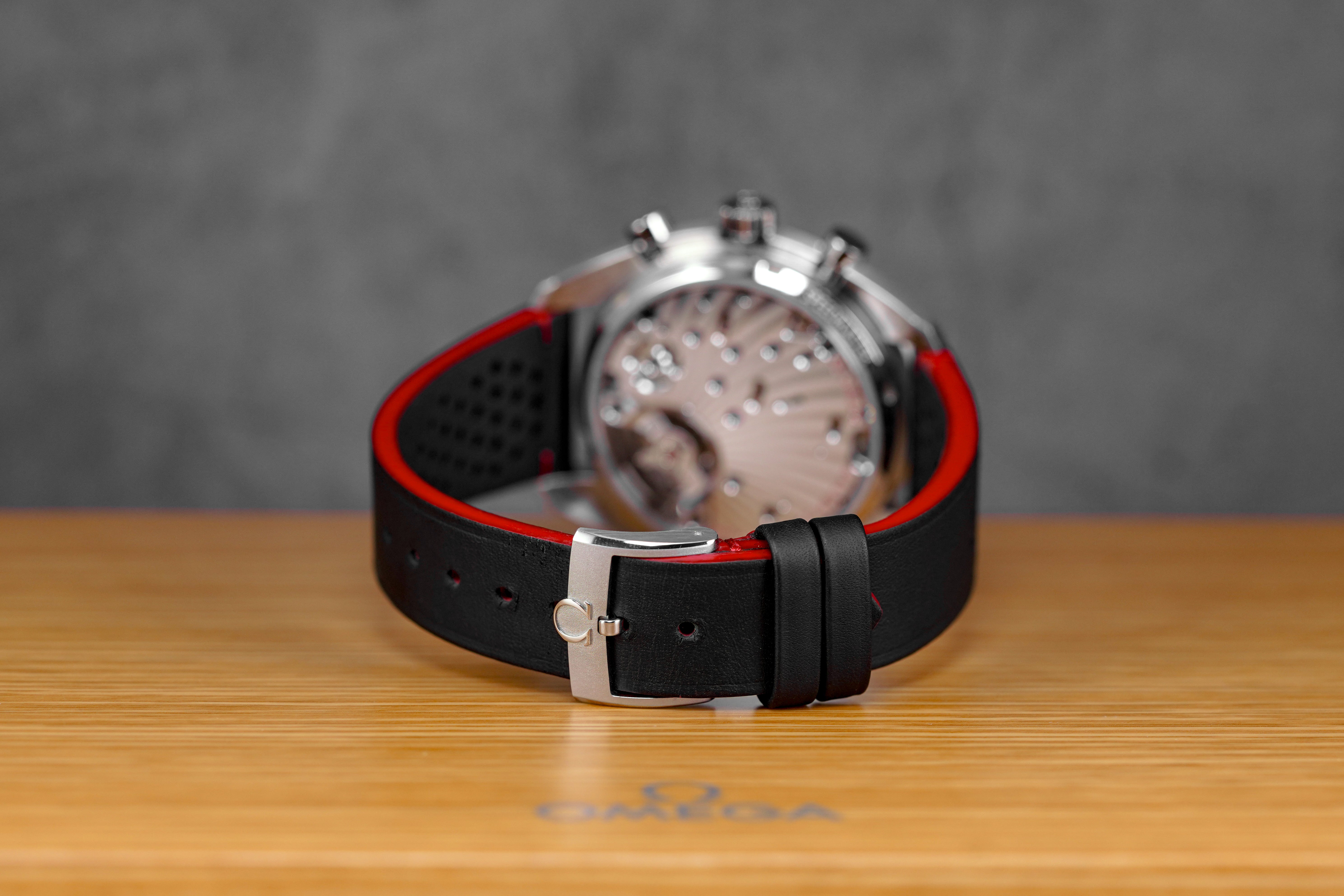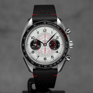 OMEGA SPEEDMASTER CHRONOSCOPE SILVER-RED DIAL LEATHER STRAP