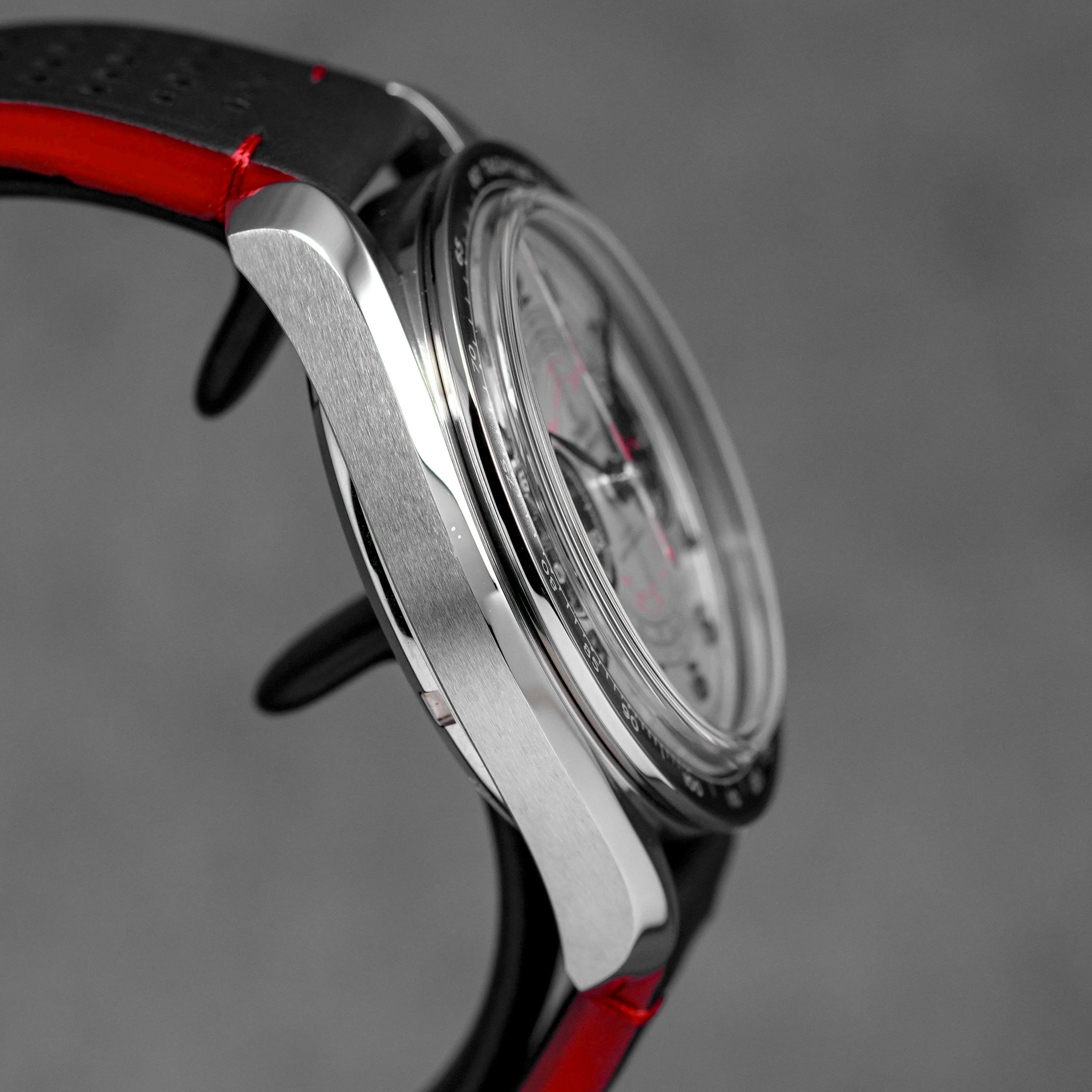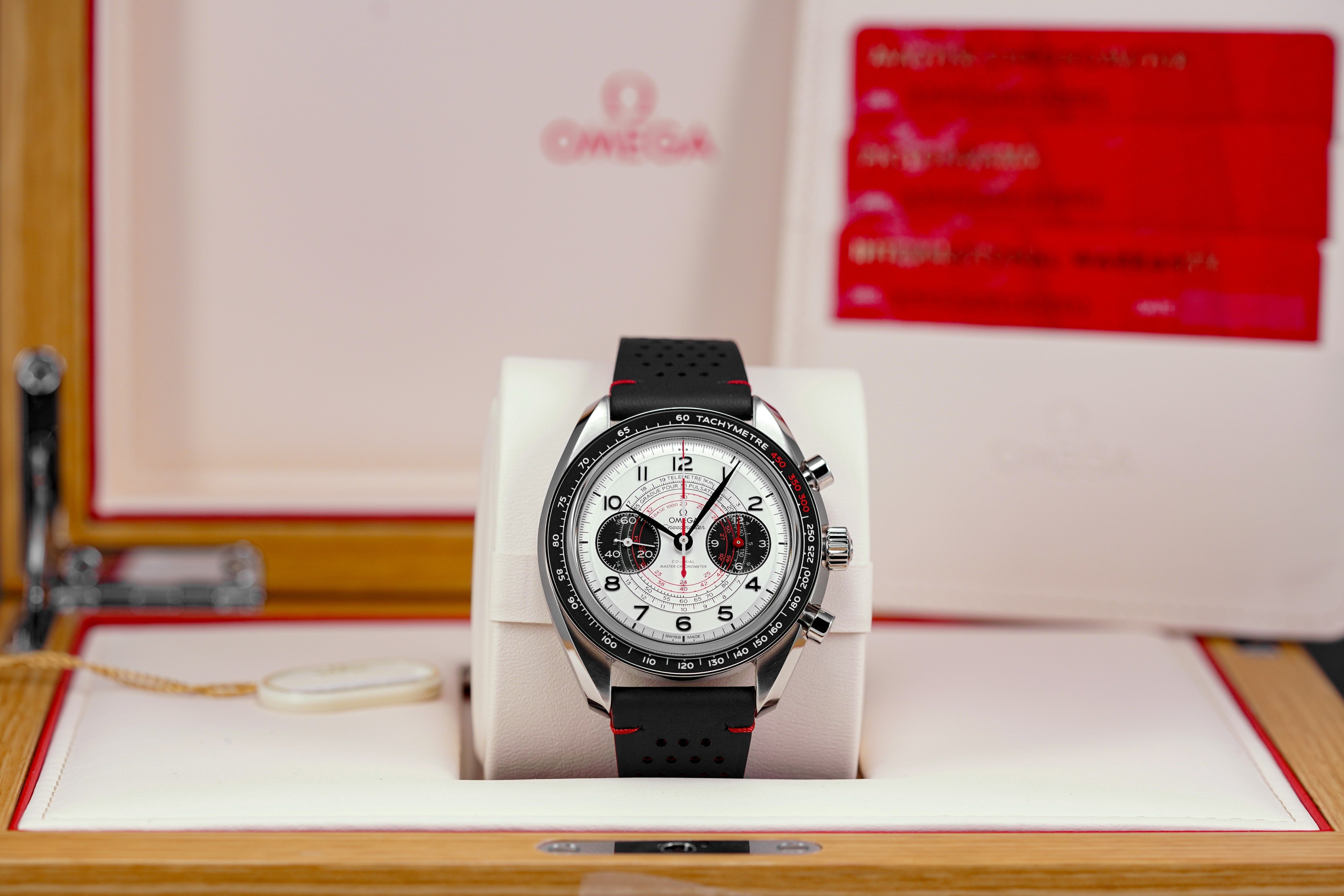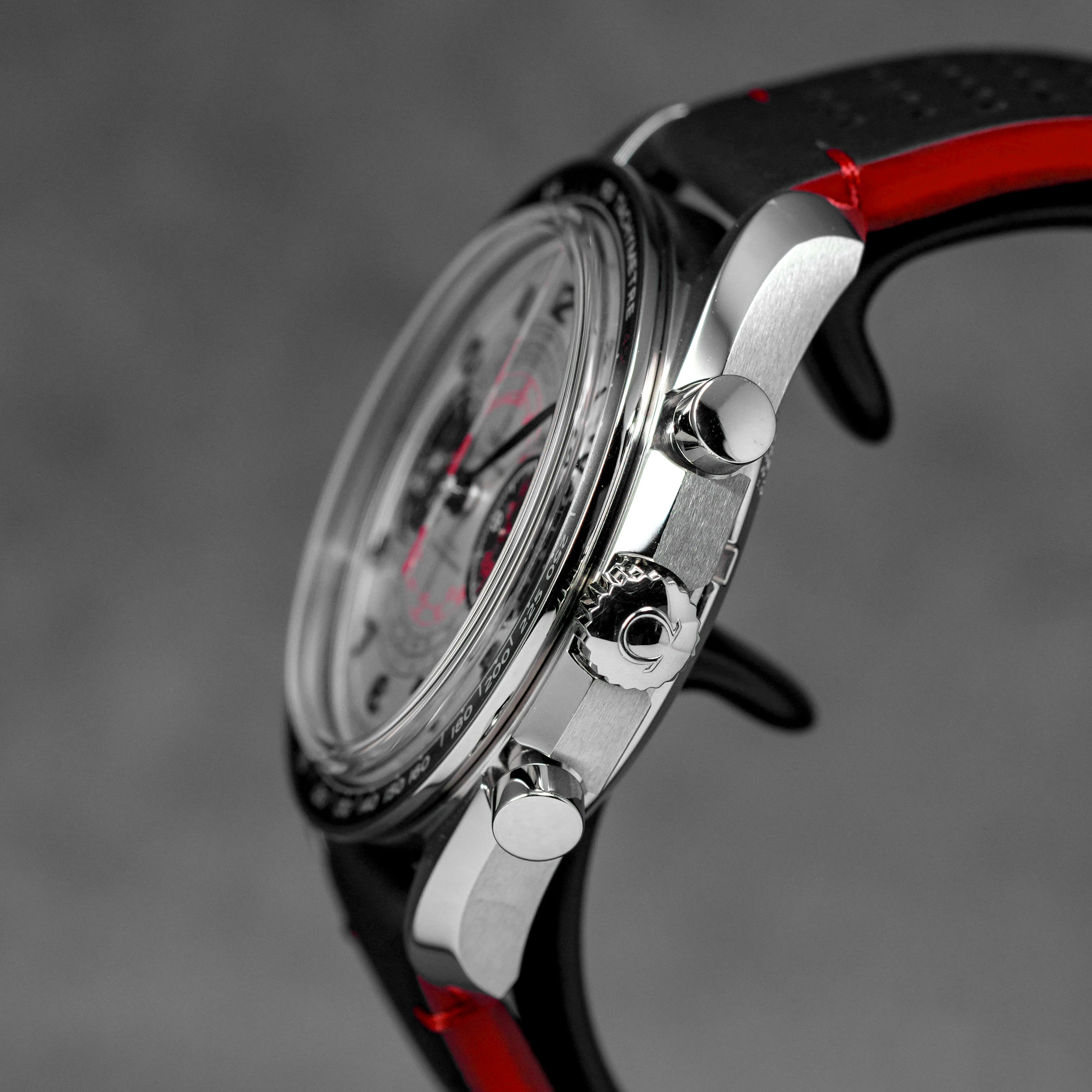 SPEEDMASTER CHRONOSCOPE SILVER-RED DIAL LEATHER STRAP (UNDATED)