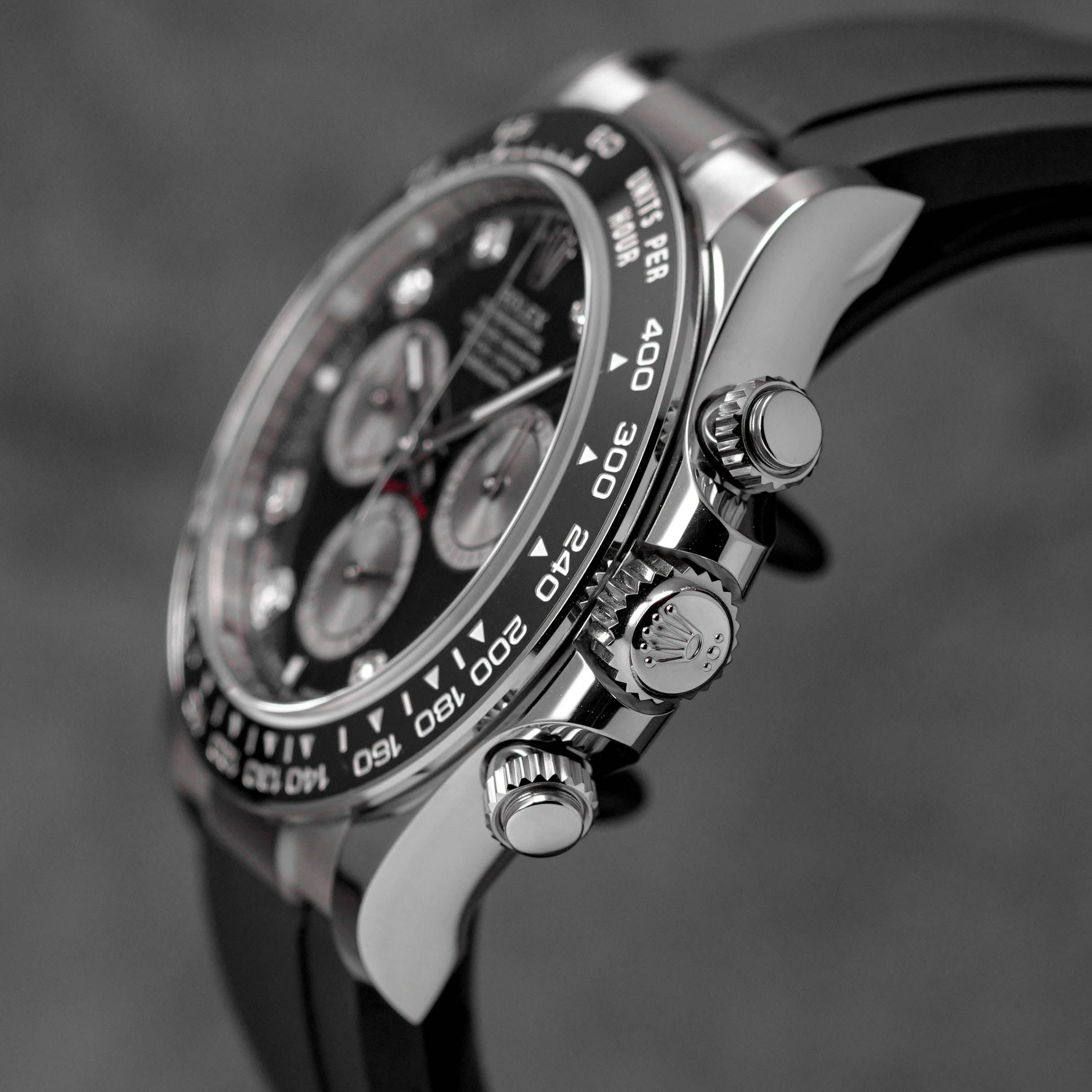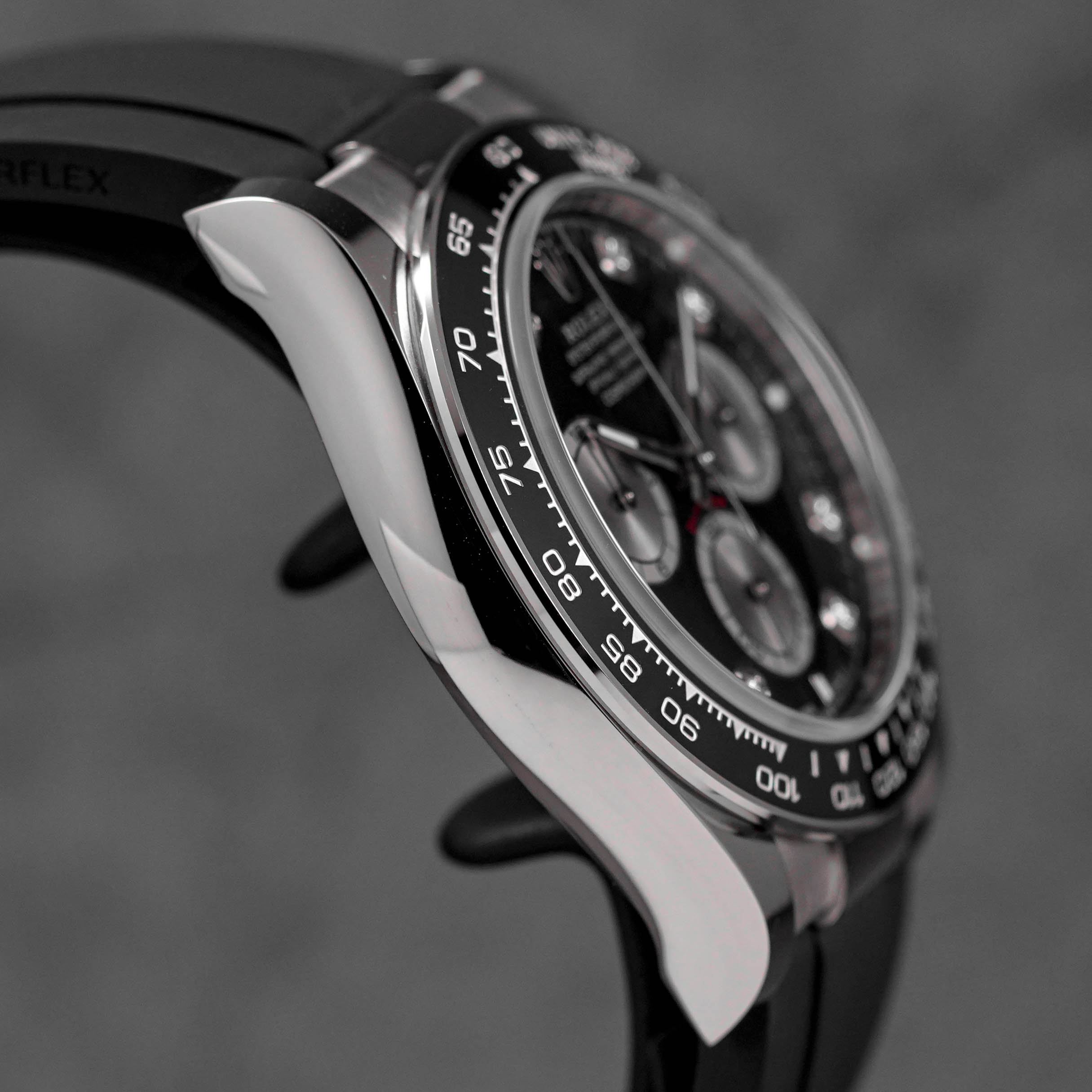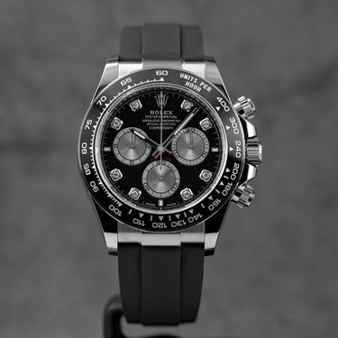ROLEX DAYTONA OYSTERFLEX WHITEGOLD BLACK DIAMOND DIAL RING BEZEL