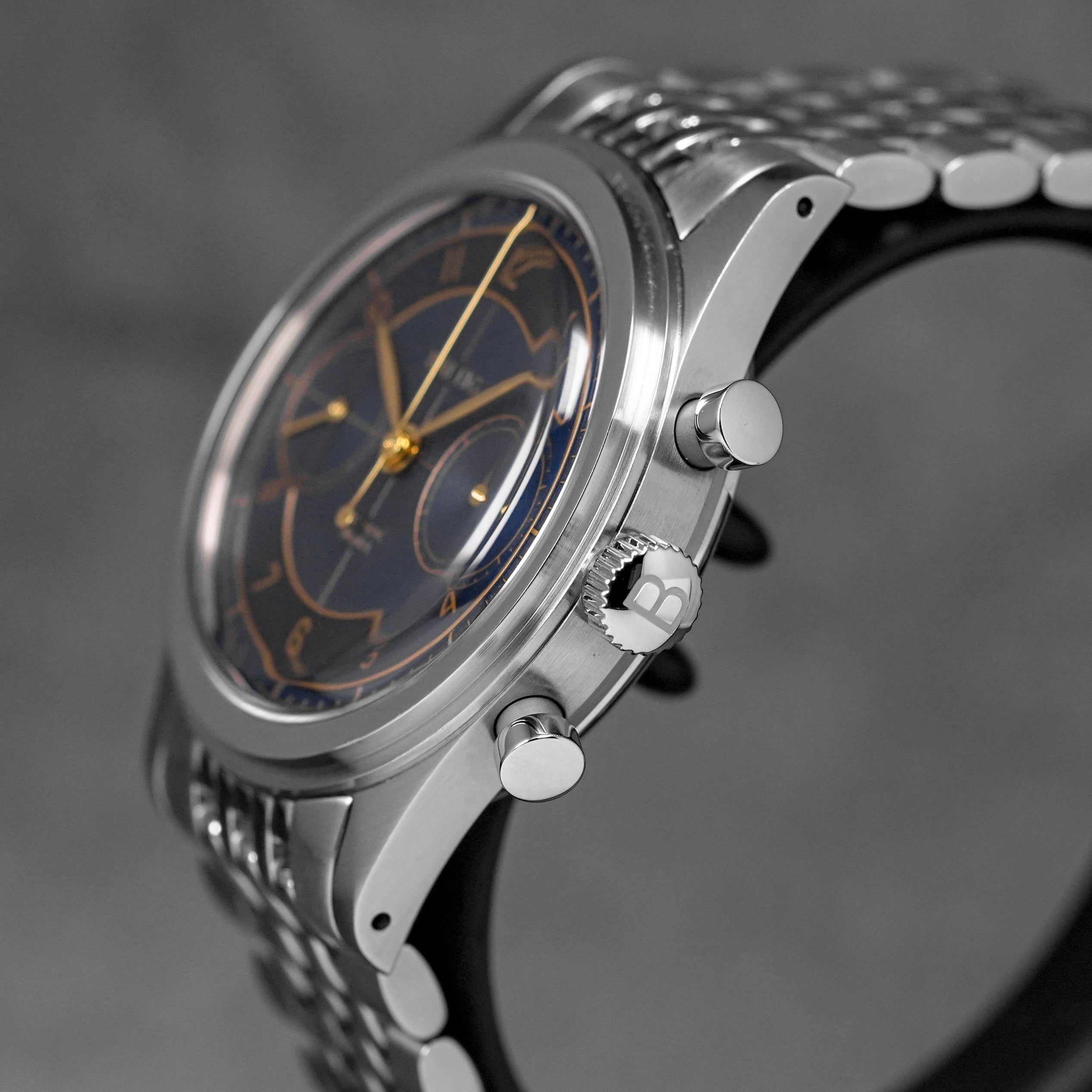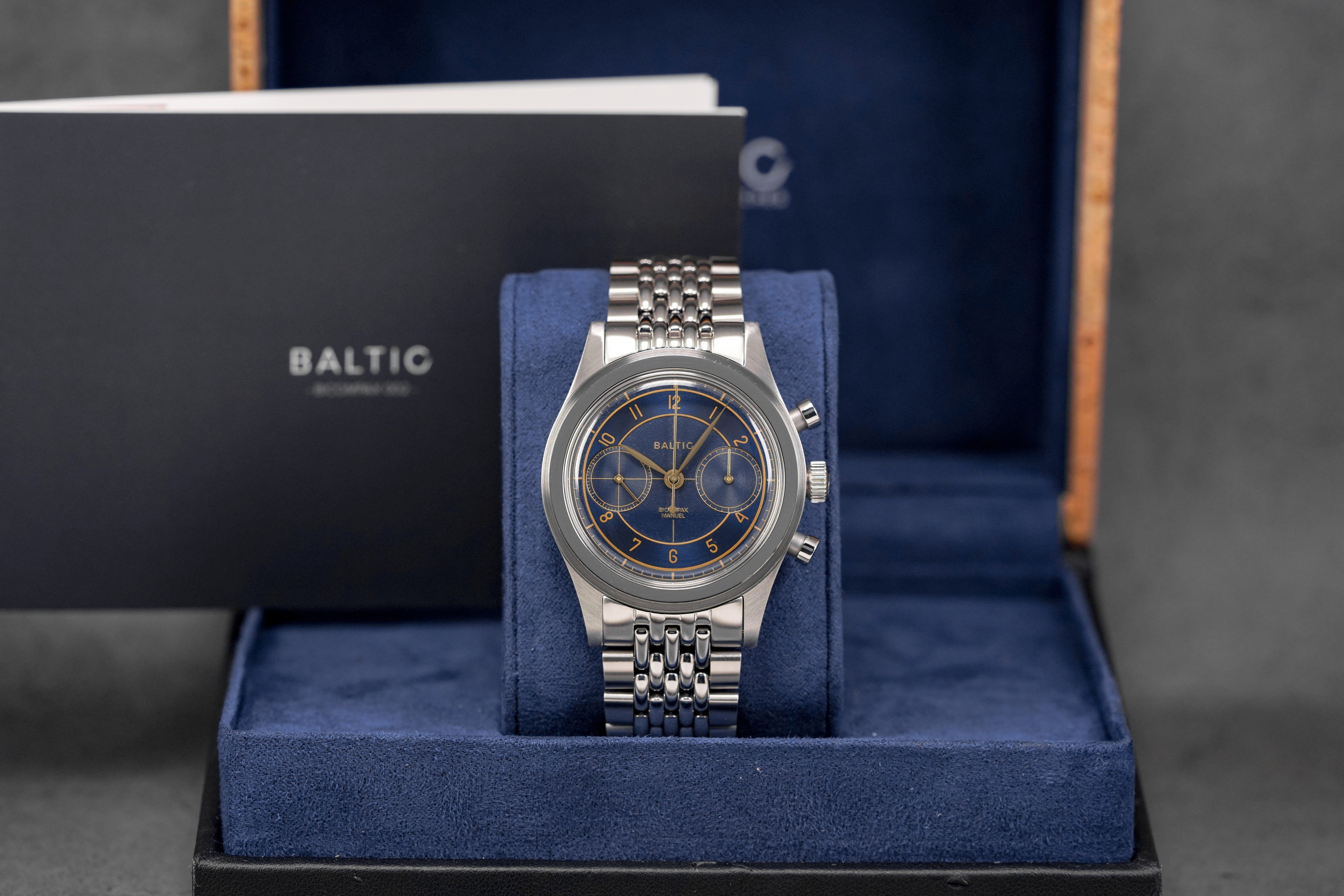 BALTIC BICOMPAX 002 38MM CHRONOGRAPH BLUE GILT DIAL