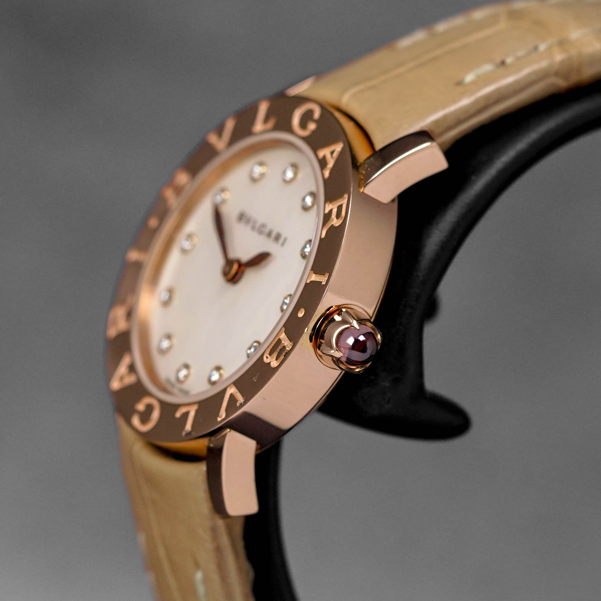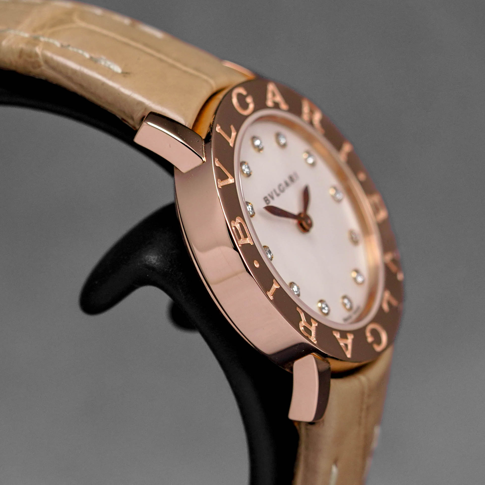 BB LADIES ROSEGOLD MOP DIAMOND DIAL LEATHER STRAP (WATCH ONLY)