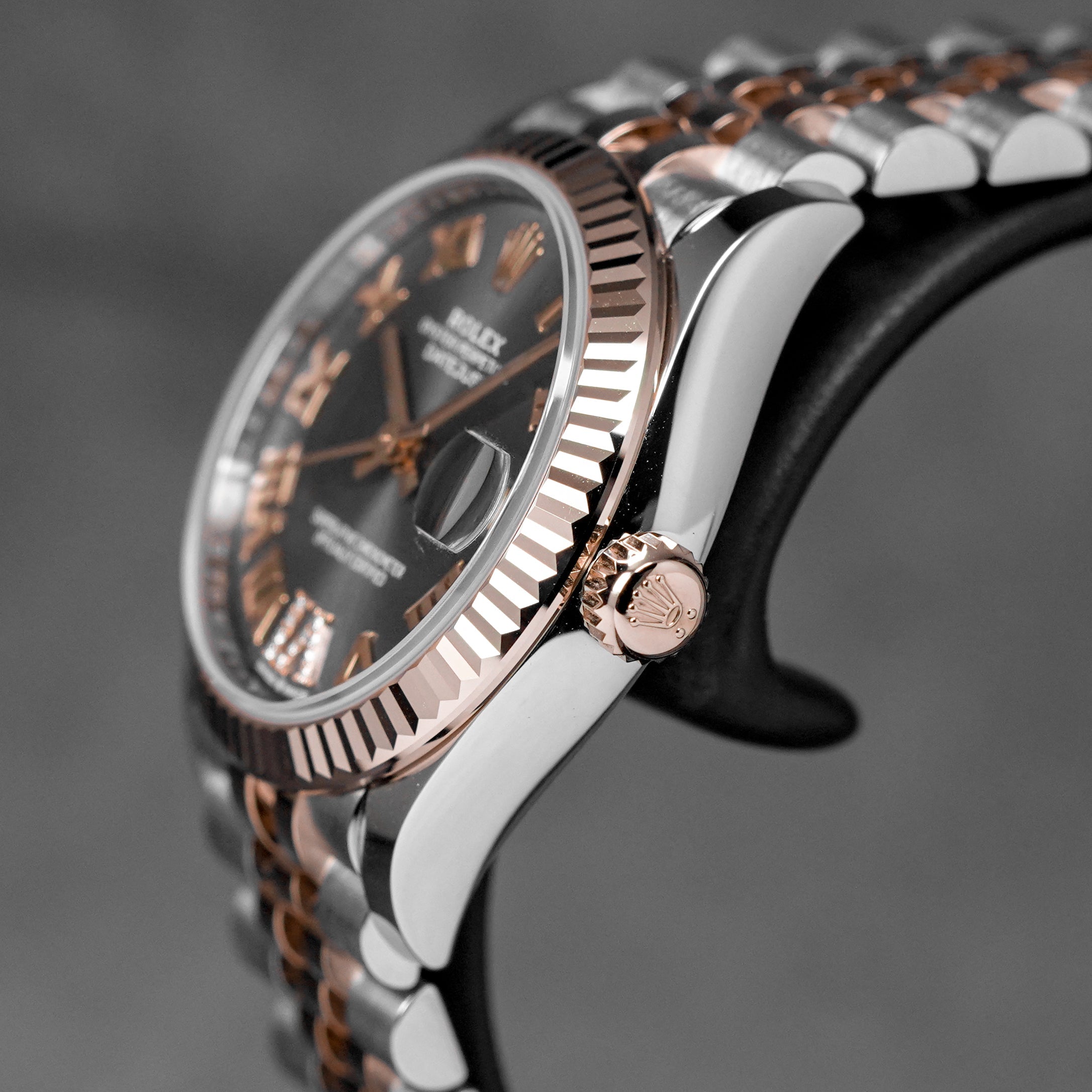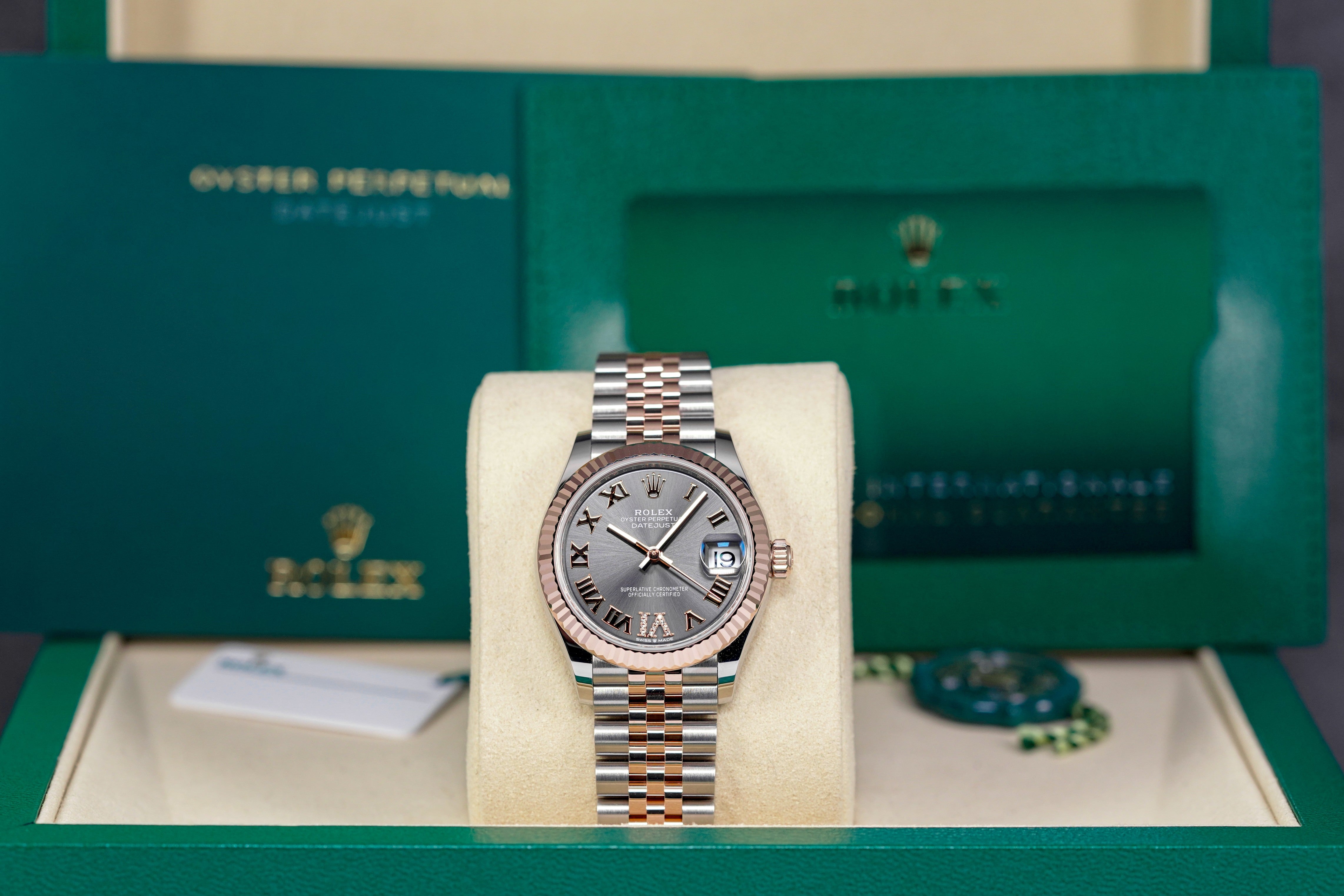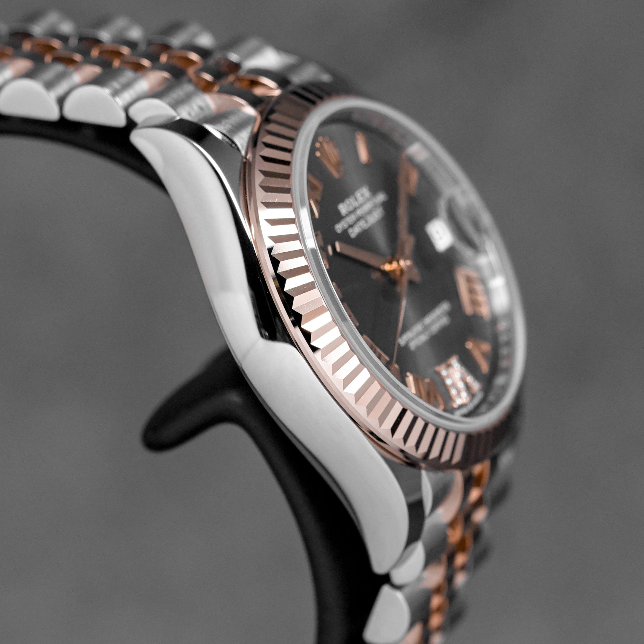 ROLEX DATEJUST 31MM TWOTONE ROSEGOLD RHODIUM ROMAN DIAL DIAMOND ON VI