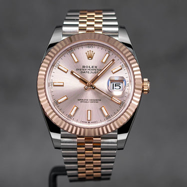 ROLEX DATEJUST 41MM TWOTONE ROSEGOLD SILVER SUNDUST DIAL